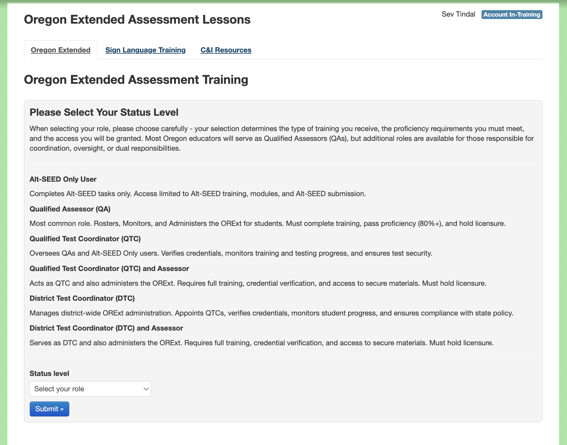 Alt-SEED Only User - Adult who knows the student best. The Alt-SEED is now required for all grades, including grades 9 & 10. For those who only need to administer the Alt-SEED for grades 9 & 10 the following training is required: